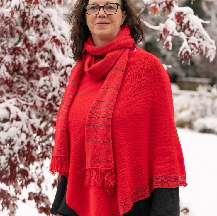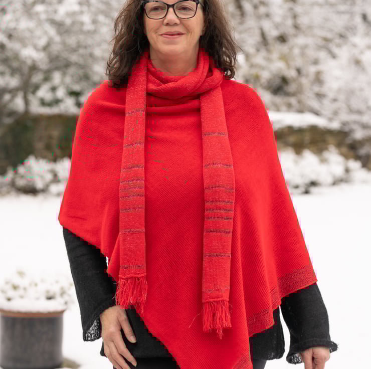 Discover timeless elegance with my Berry Red Poncho decorated with a silver lurex textured design. A lightweight and flowing poncho that would cheer up the dullest of days.