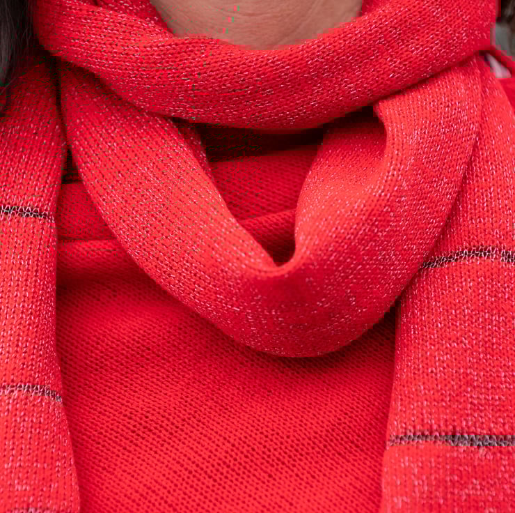 Cheer up your winter wardrobe with my Berry Red Super Long Scarf decorated with a silver lurex textured design. A lightweight and flowing scarf that can be worn lots of different ways.