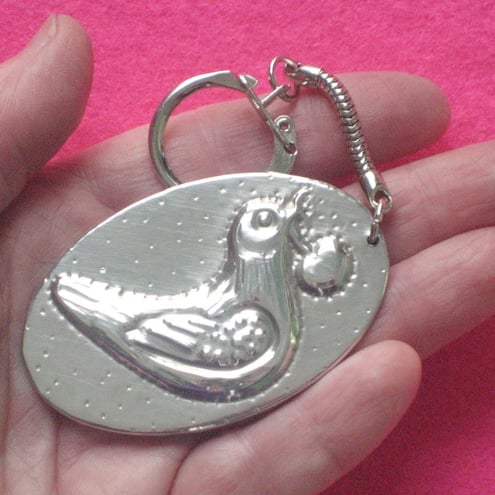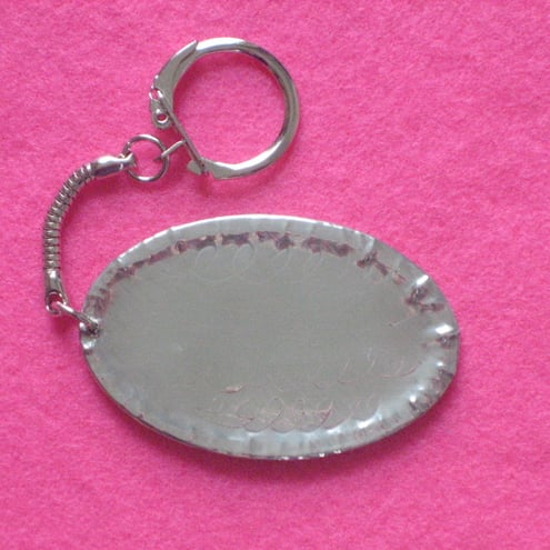 This keyring has been hand-made in shiny modern pewter. (The design has been raised on a piece of sheet pewter, the raised area has been filled,then mounted on a rigid base) The oval measures 60 x 37mm,and is light in weight.