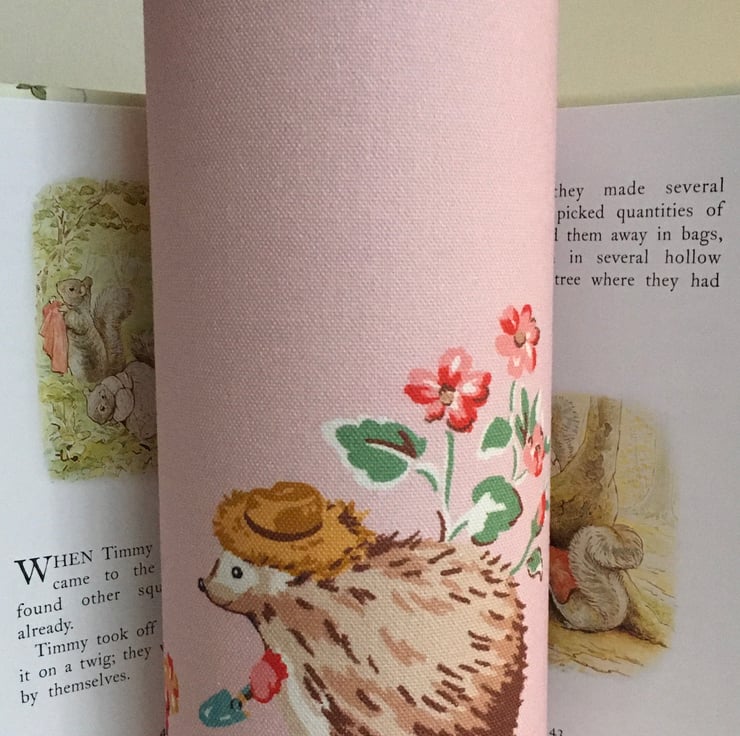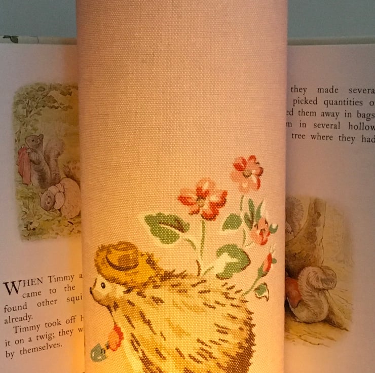 Such a delightful Cath Kidston print featuring Gardening Hedgehogs of a pink cotton duck fabric. Night light looks simply lovely lit up.