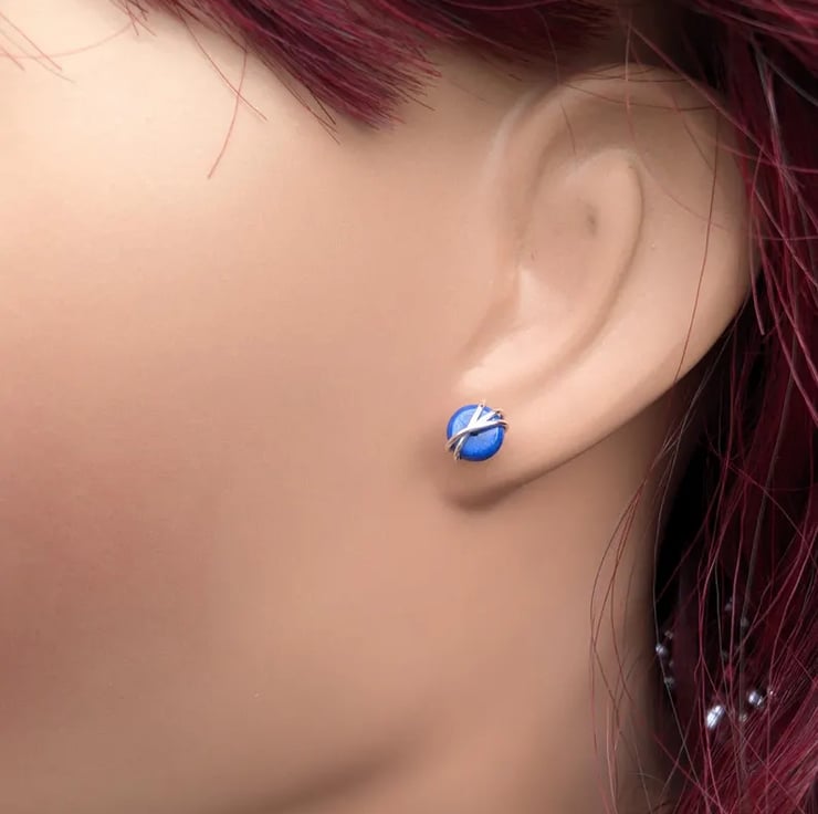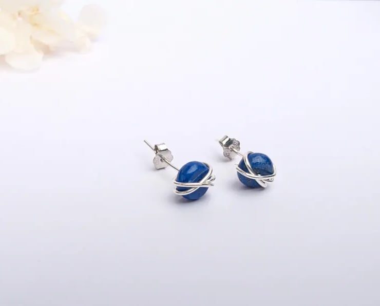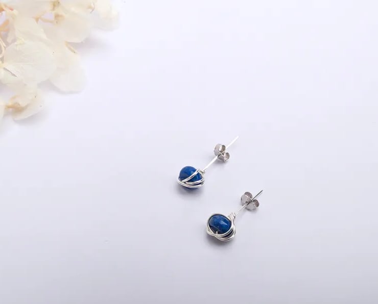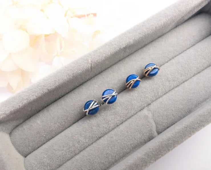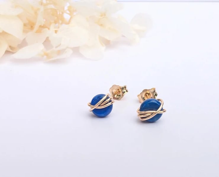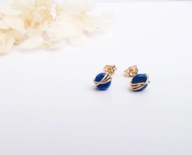Delicate handmade ear studs featuring a lapis lazuli gemstone bead. Designed with a minimalist touch, these are simple lightweight studs that are perfect for wearing everyday. Available in sterling Silver of 14K Gold Filled. These dainty earring studs would make a lovely gift for yourself or a loved one.