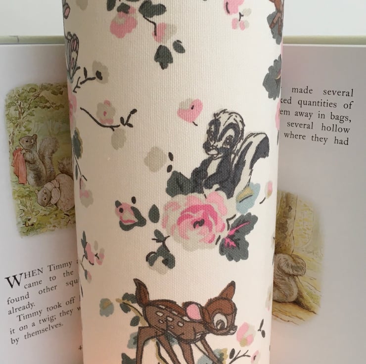 Such a delightful Cath Kidston print featuring Bambi, Thumper and friends on a cream cotton duck fabric, Night Light looks simply lovely lit up.