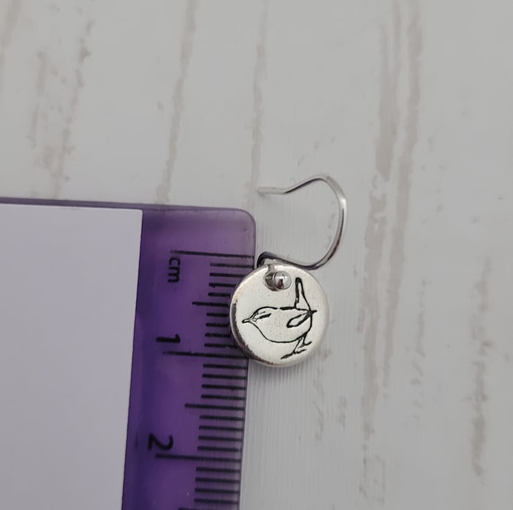The finished wren earrings are sterling silver & are attached to a sterling silver earring wires.