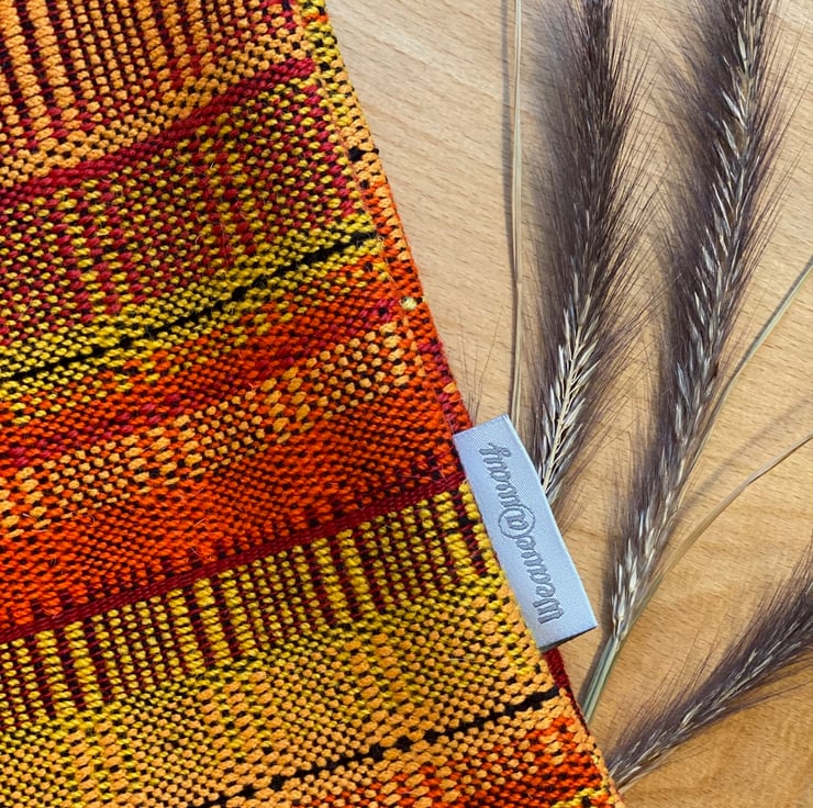 Designed and made using 100% woollen yarns in burnt oranges, deep reds and golden yellows , it is the ideal choice for anyone who loves to play with colour and pattern,
