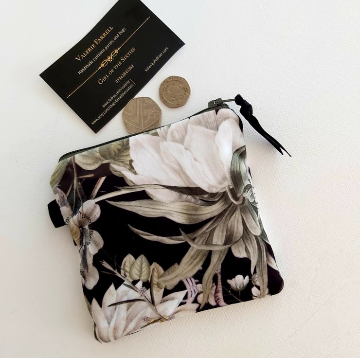 Pretty little printed velvet fabric coin purse, perfect for your coins, notes and cards
