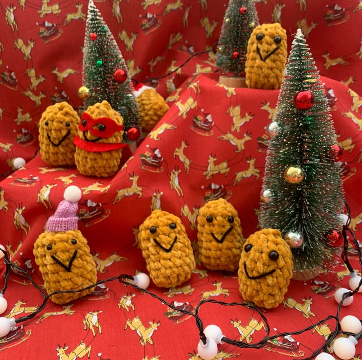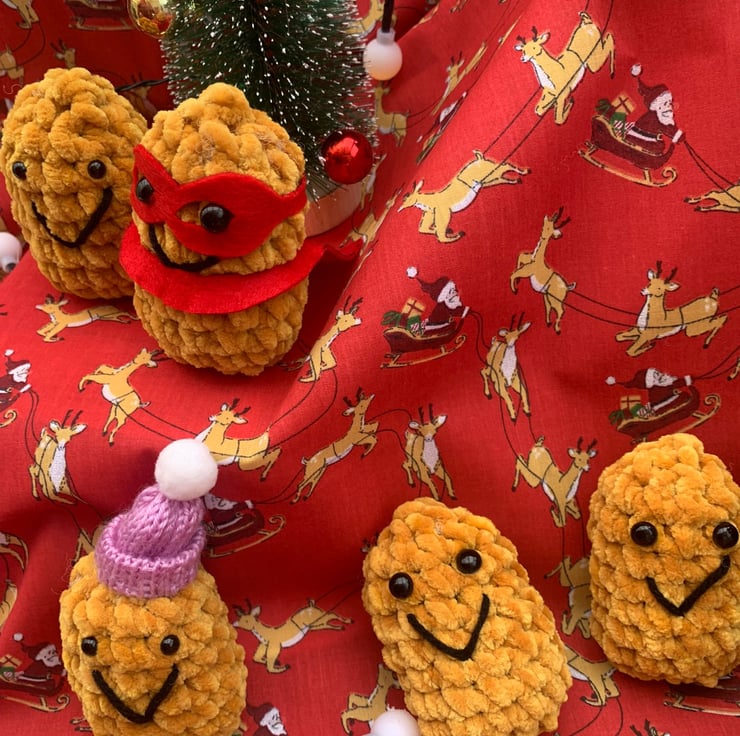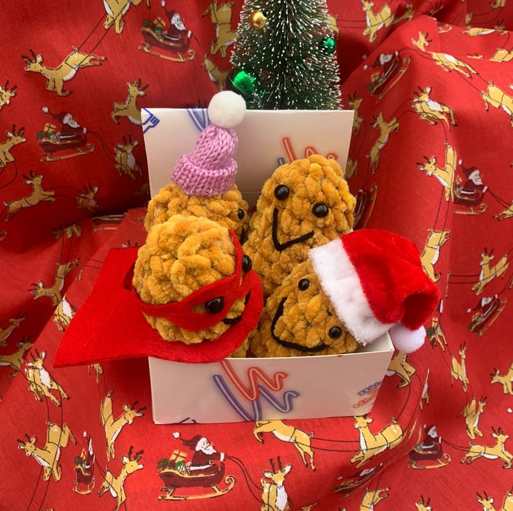 Know a nugget fan? Gift them a novelty box of four festive crocheted nuggets, their very own box of nuggets that will last forever