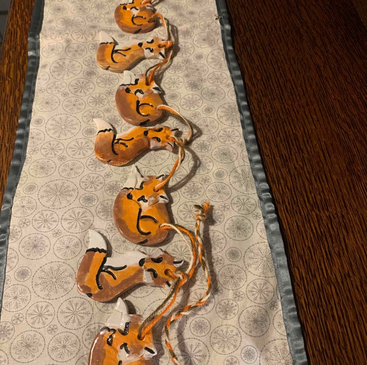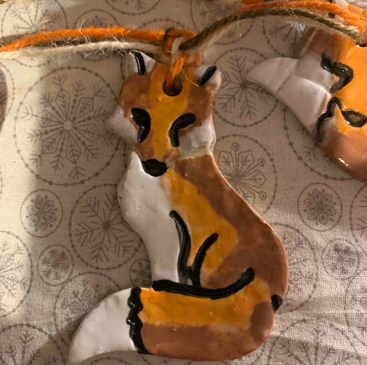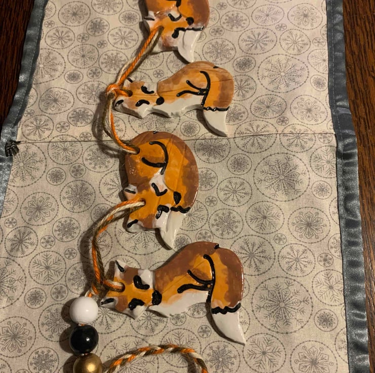Beautiful hand painted ceramic bunting in a sitting and laying fox design.