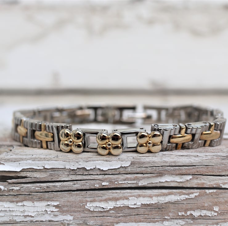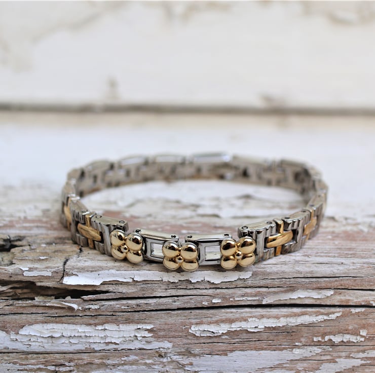 Pretty up-cycled flower beads bracelet - gift for her - handmade gift