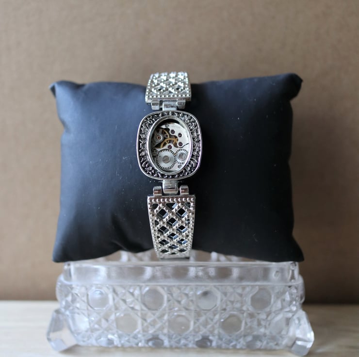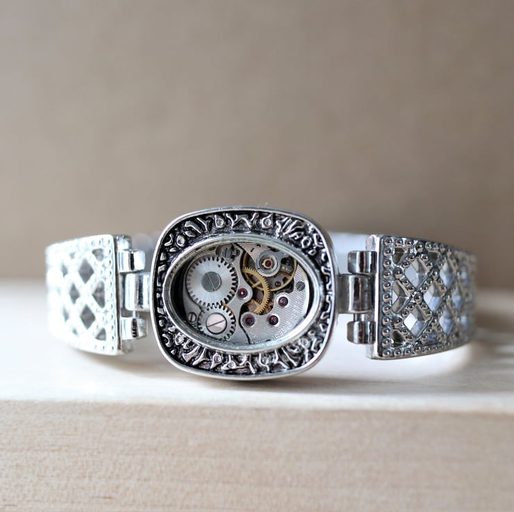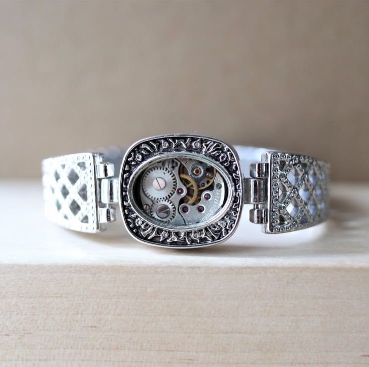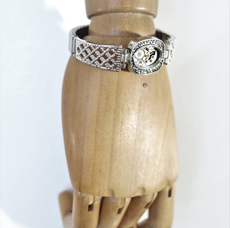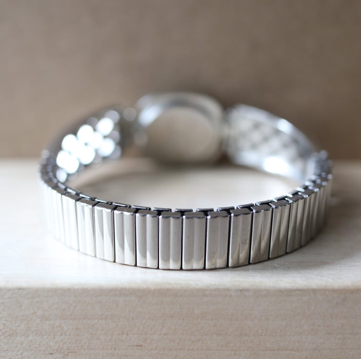 Upcycled stainless steel watch parts stylish stretchable bracelet