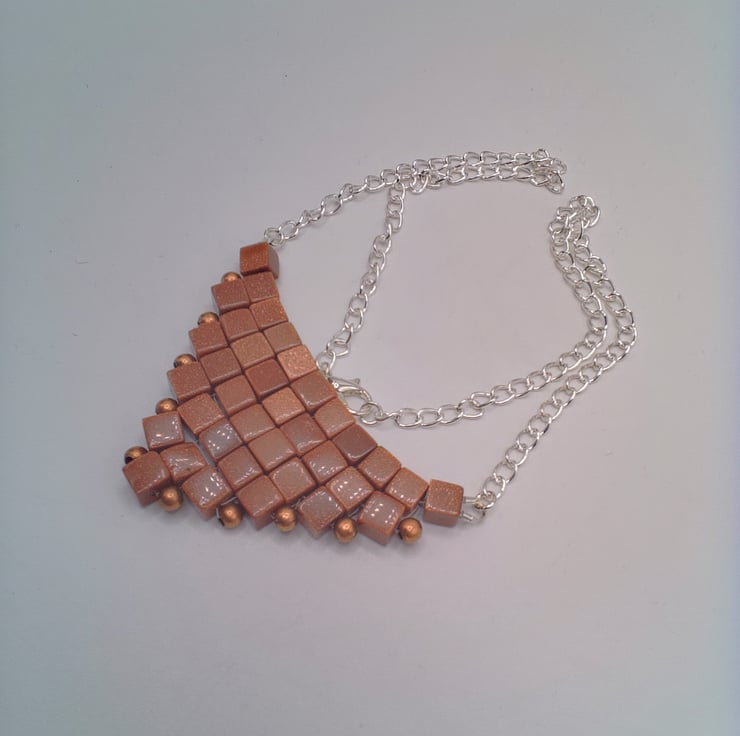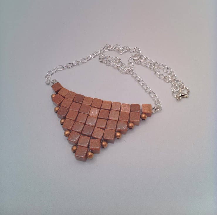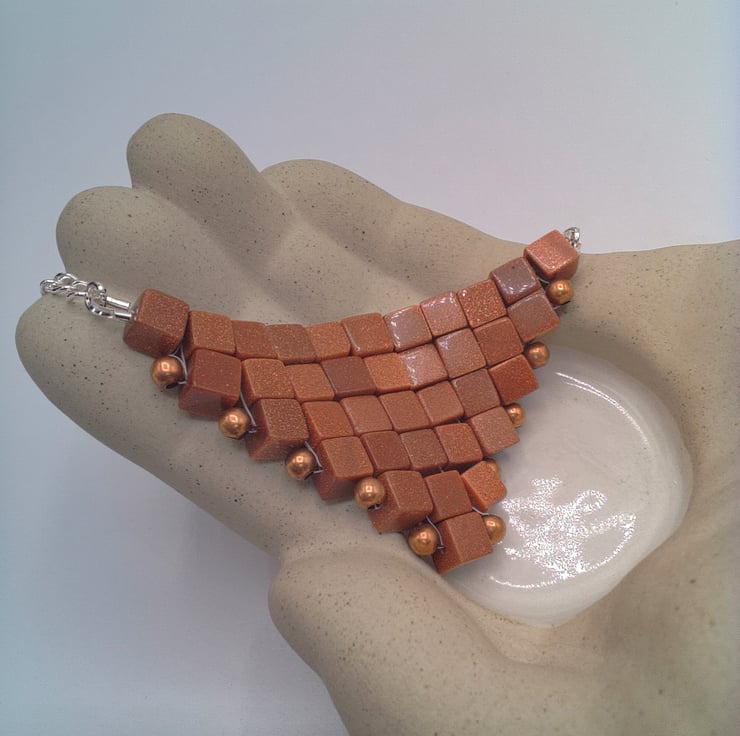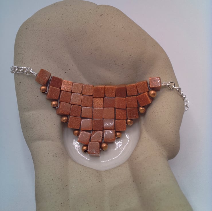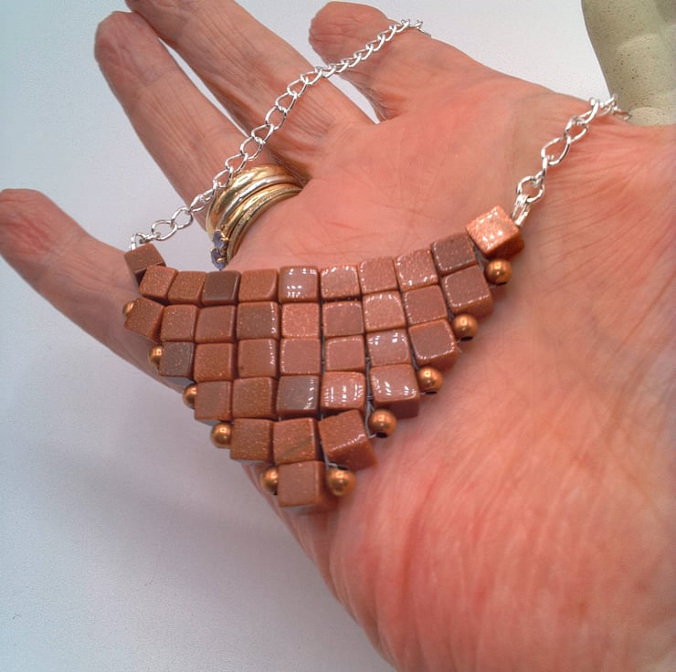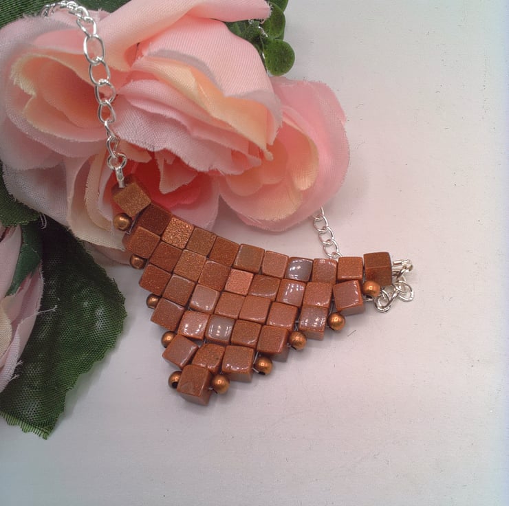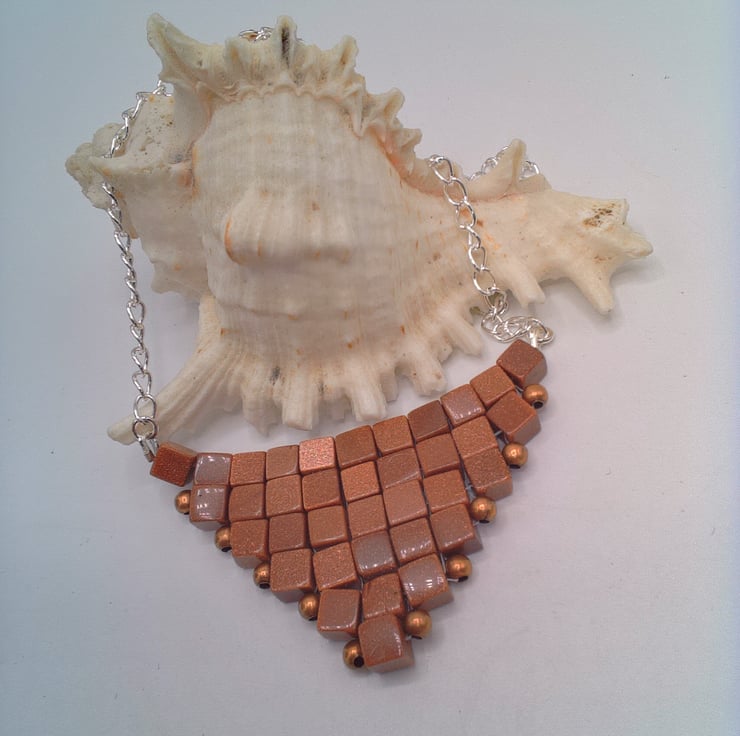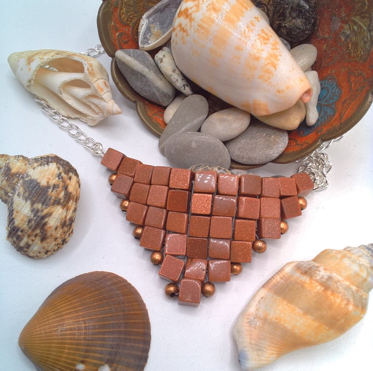 Hand Sewn Goldstone and Bronze Coloured Bead Pyramid Necklace, Gift for Her, Custom Make, Pyramid Necklace, Birthday Gift, Anniversary Gift, Christmas Gift, Stocking Filler, Goldstone Necklace