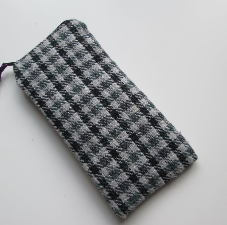 Charming little case for glasses or sunglasses in lovely check fabric with contrasting black zip and lining. Lightly padded