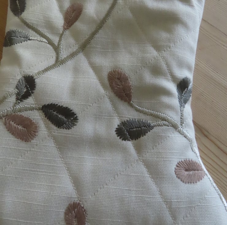 Christmas Stocking. Handmade & Quilted, Winter White Fabric with embroidery.