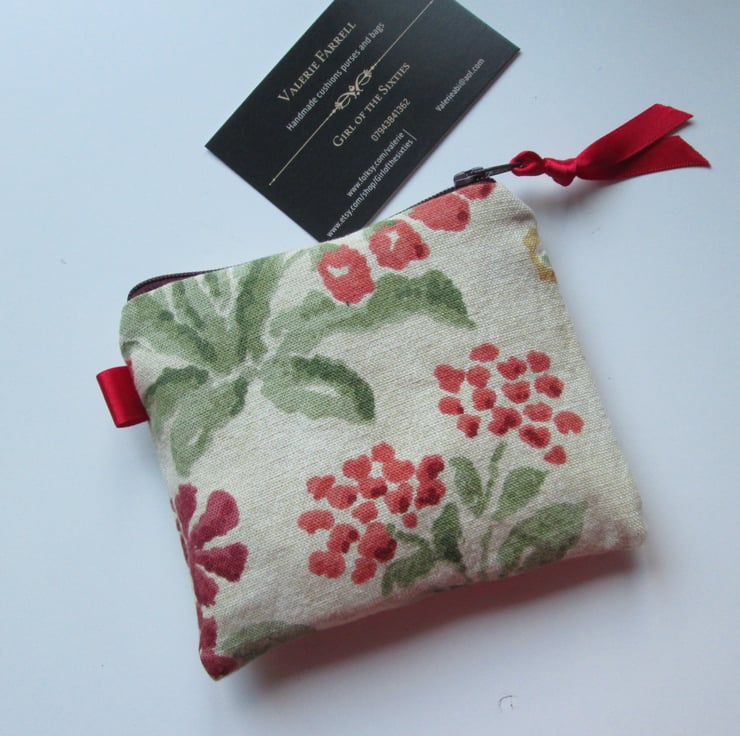 Pretty little printed fabric coin purse, perfect for your coins, notes and cards