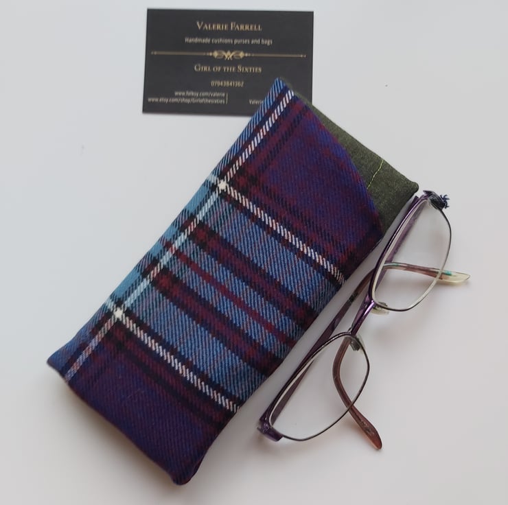 Charming little case for glasses or sunglasses in lovely woollen fabric with contrasting lining. Lightly padded