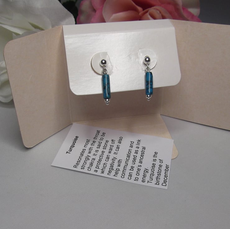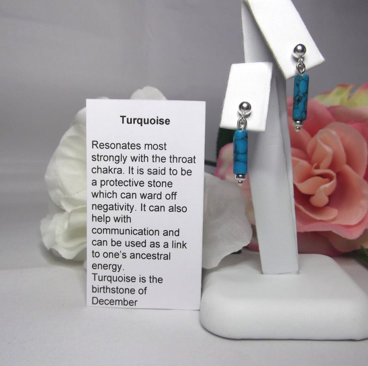 The Turquoise drop earrings are supplied in a gift box made from recycled materials and come with a card explaining the gemstone properties and are sent by 2nd class Royal Mail postage.