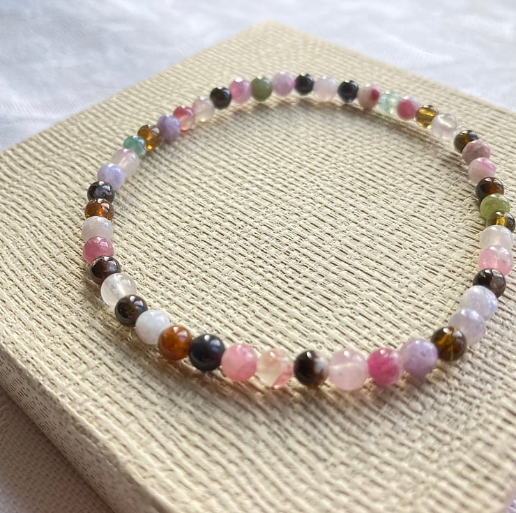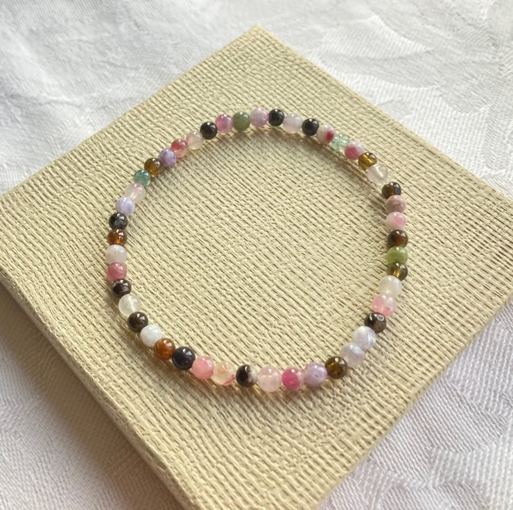 This stretchy bracelet is made with small Tourmaline gemstones.