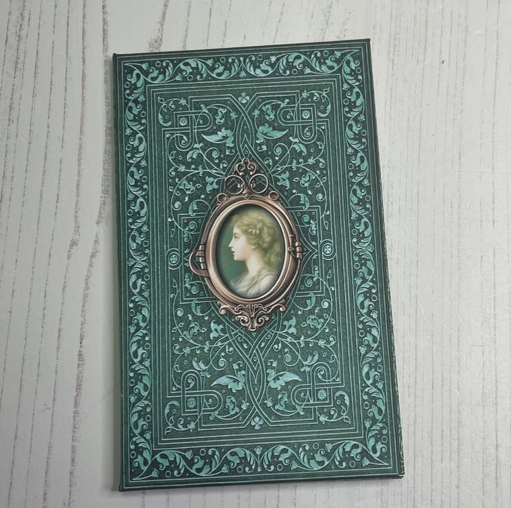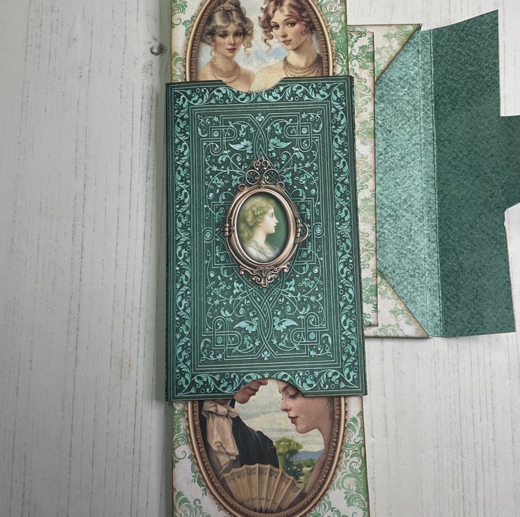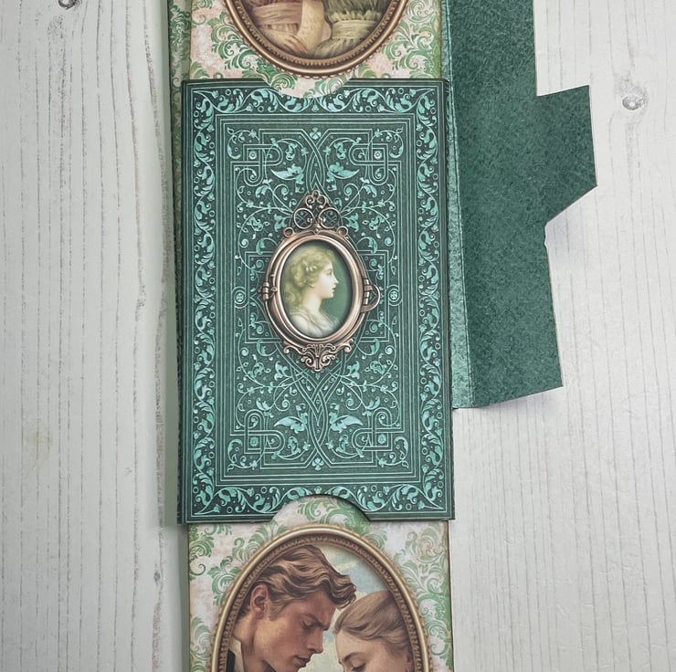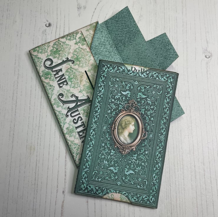For something a bit different a slider card in a Jane Austen theme, presented in a box envelope in a vintage style print. The card has 2 images which then pulled from the top and bottom back, pull out to reveal 2 beautiful cameos. A perfect gift for a Jane Austen lover. Measure 3” x 5” closed and 3” x 12” fully open.