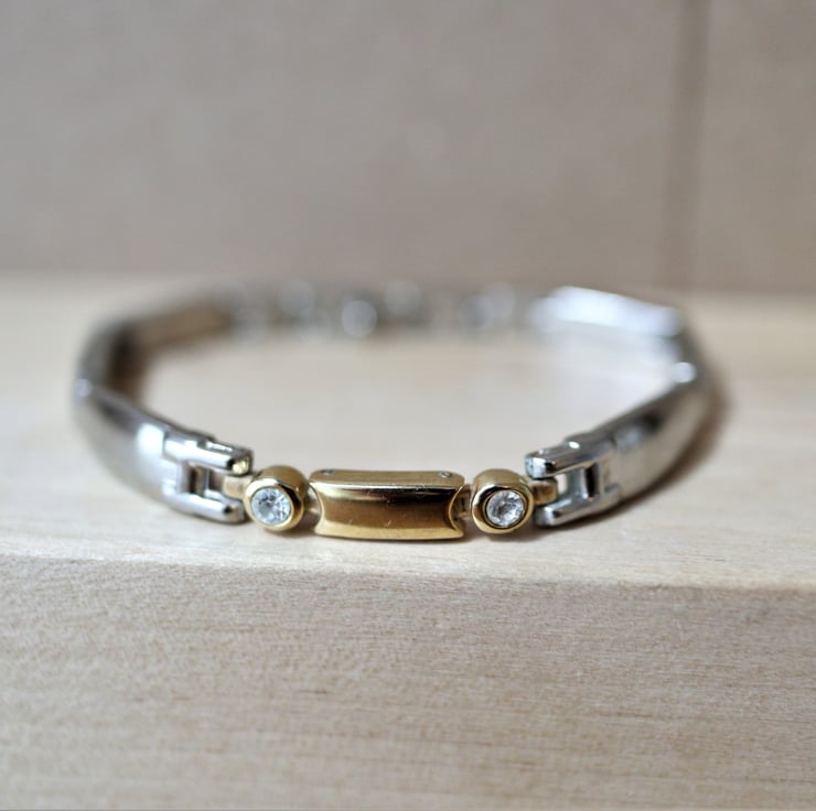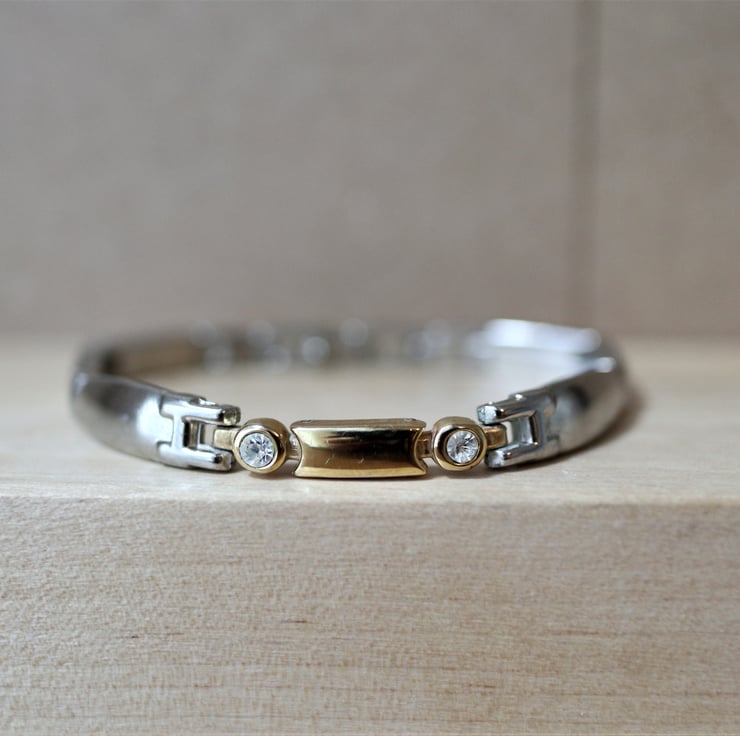 Upcycled ladies wrist watch featured sparkling rhinestone bracelet