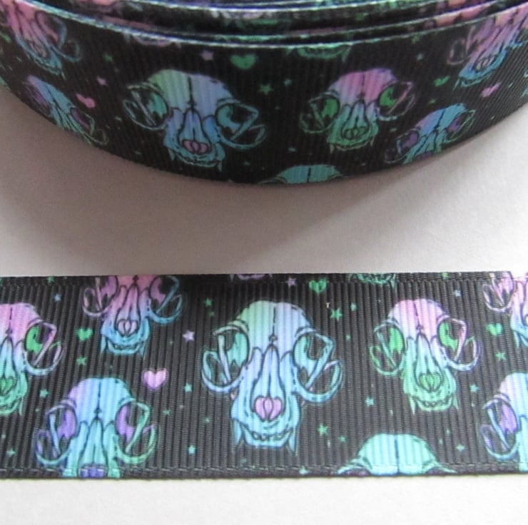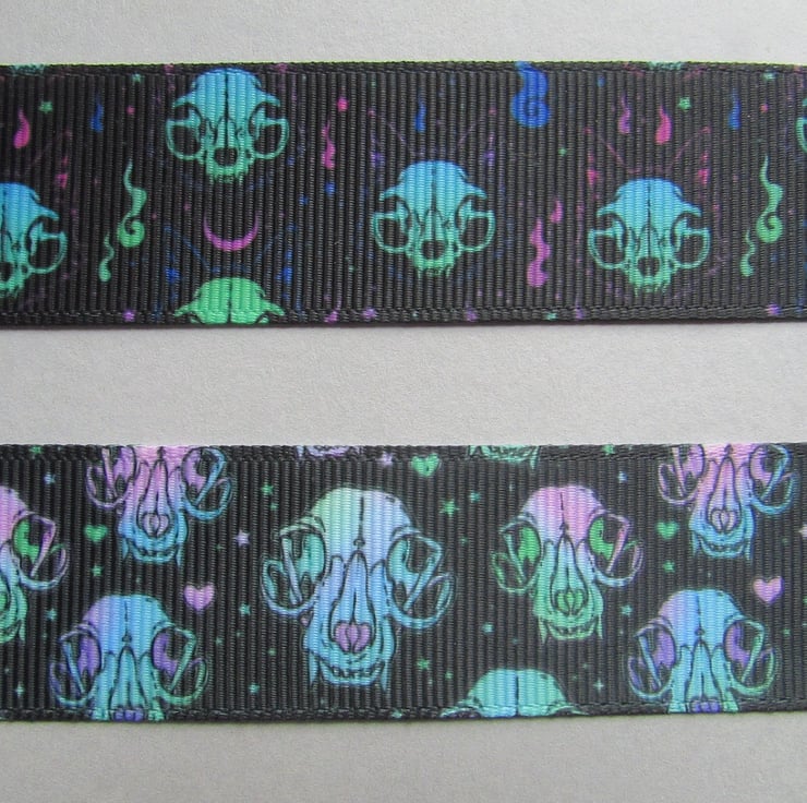 CAT SKULL RIBBON SOLD BY THE METRE.