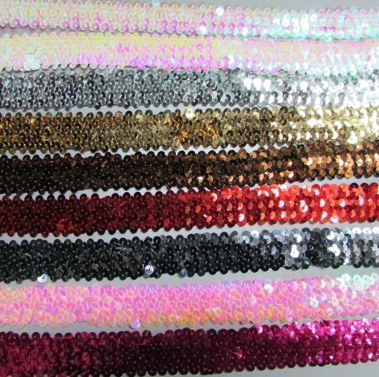 ELASTICATED SEQUIN BRAID AVAILABLE IN 9 COLOURS