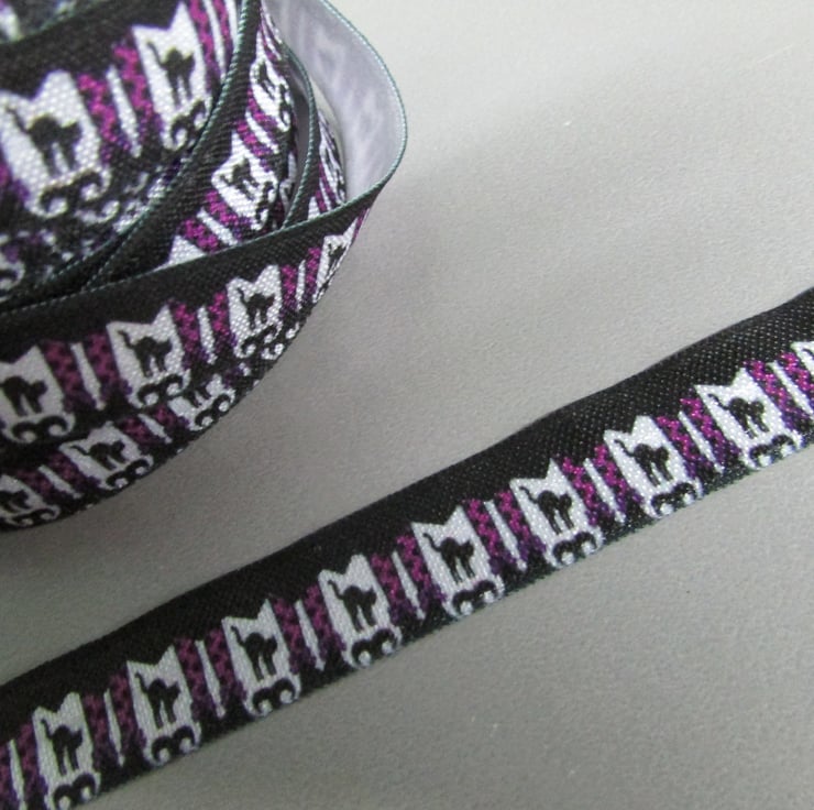 BLACK CAT FOLD OVER ELASTIC SOLD BY THE METRE.