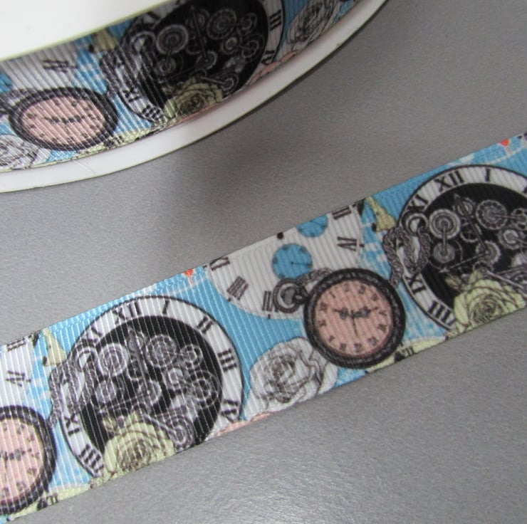 STEAMPUNK COG AND WATCHPARTS BROWN GROSGRAIN RIBBON SOLD BY THE METRE.