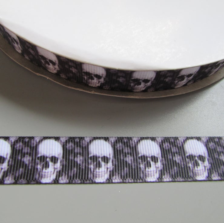 Gothic Skull Grosgrain Ribbon 1.6cm x 1 Metre