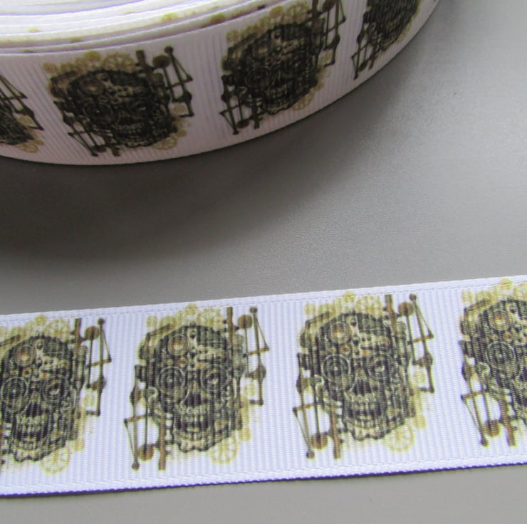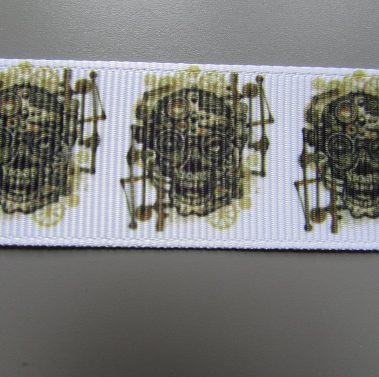 STEAMPUNK SKULL GROSGRAIN RIBBON SOLD BY THE METRE.