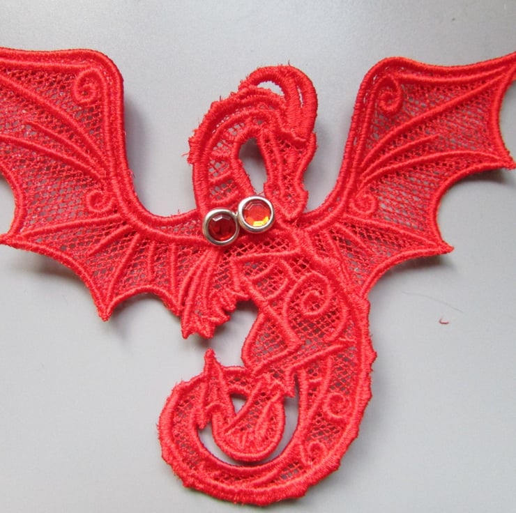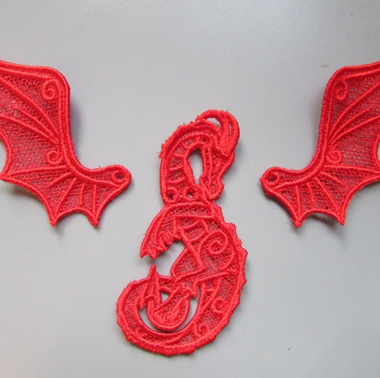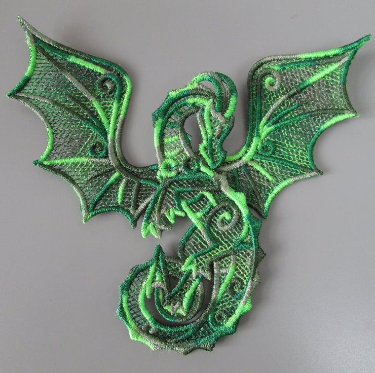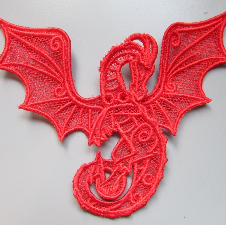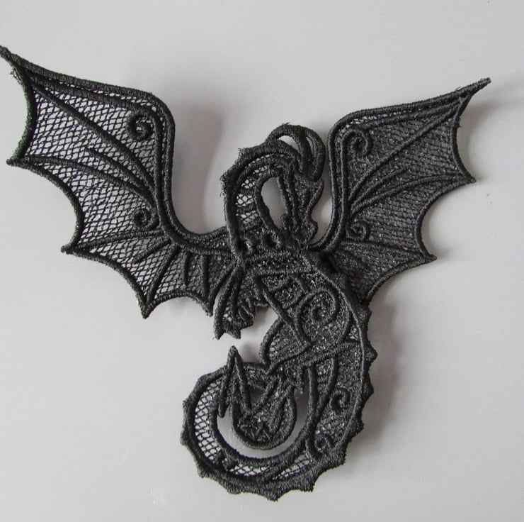EMBROIDERED LACE DRAGON APPLIQUE .