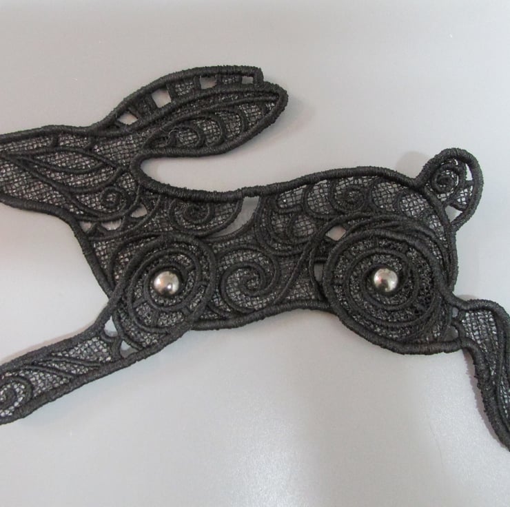 LACE RABBIT EMBROIDERED APPLIQUE .