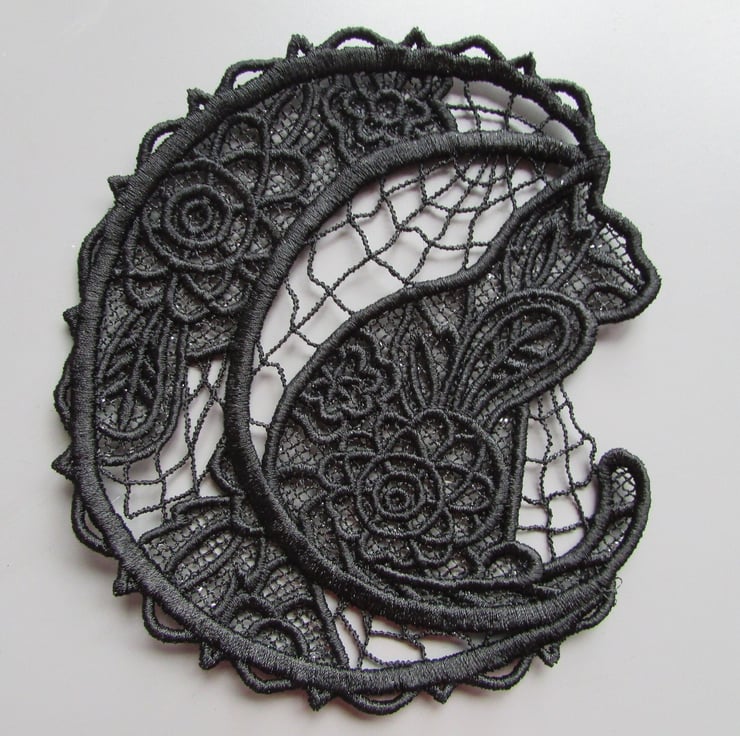 CAT ON MOON EMBROIDERED APPLIQUE .