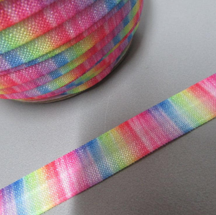 RAINBOW PASTEL FOLD OVER ELASTIC SOLD BY THE METRE.