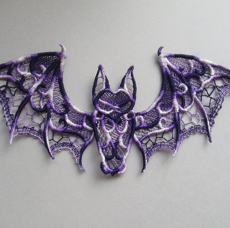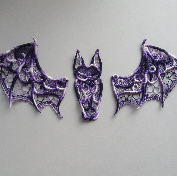 Embroidered Varigated Purple Bat Lace Applique with moving parts