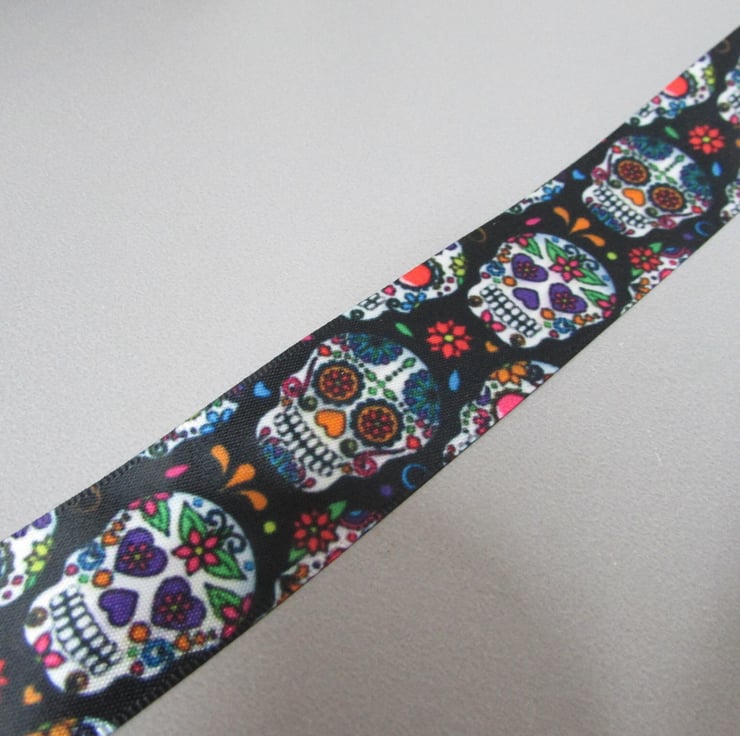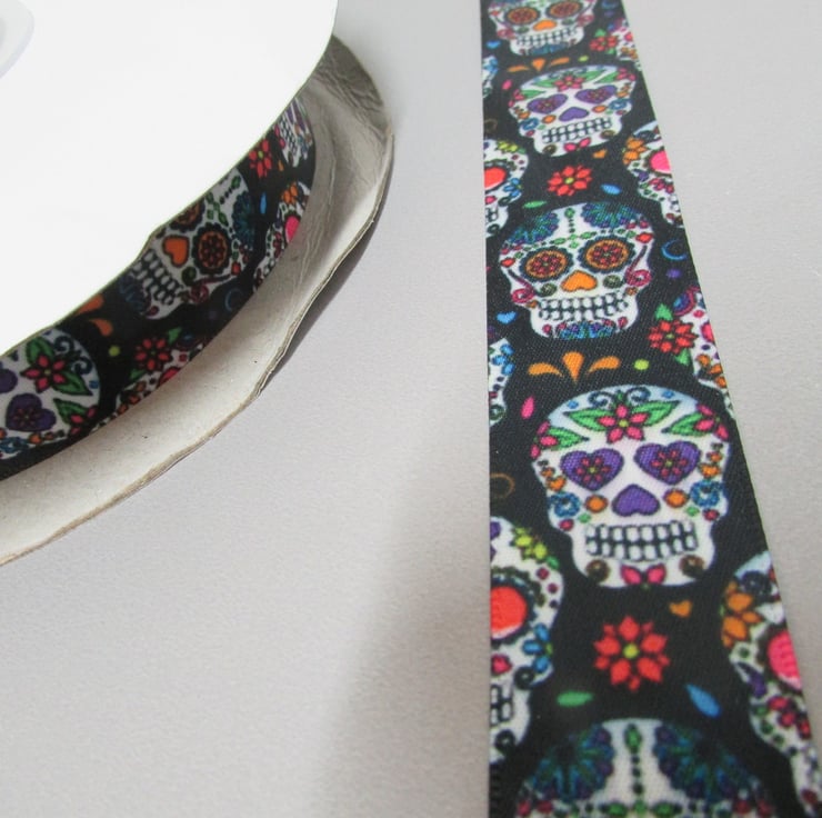 Black Sugar Skull Day of the Dead Calaveras Satin Ribbon x 1 metre available in