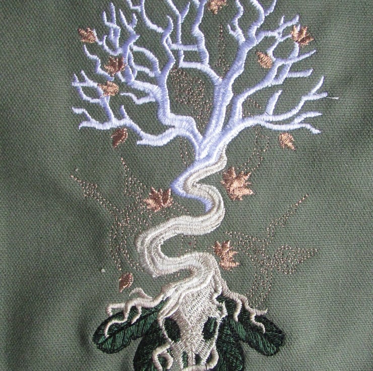 Embroidered Tree and Skull Design Eco Cotton Canvas Bag