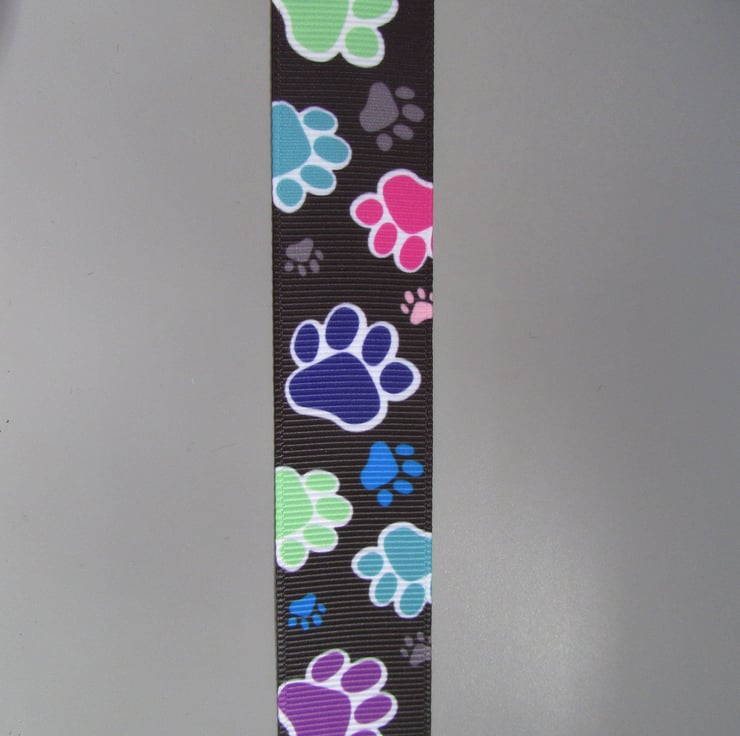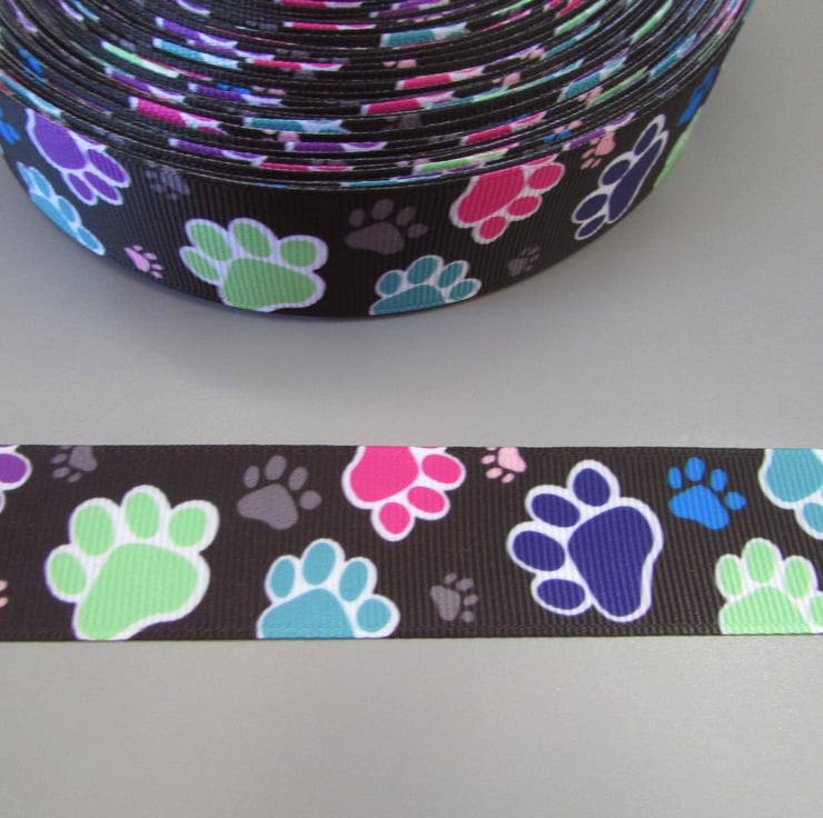 MULTI COLOUR PAW PRINT GROSGRAIN RIBBON SOLD BY THE METRE.