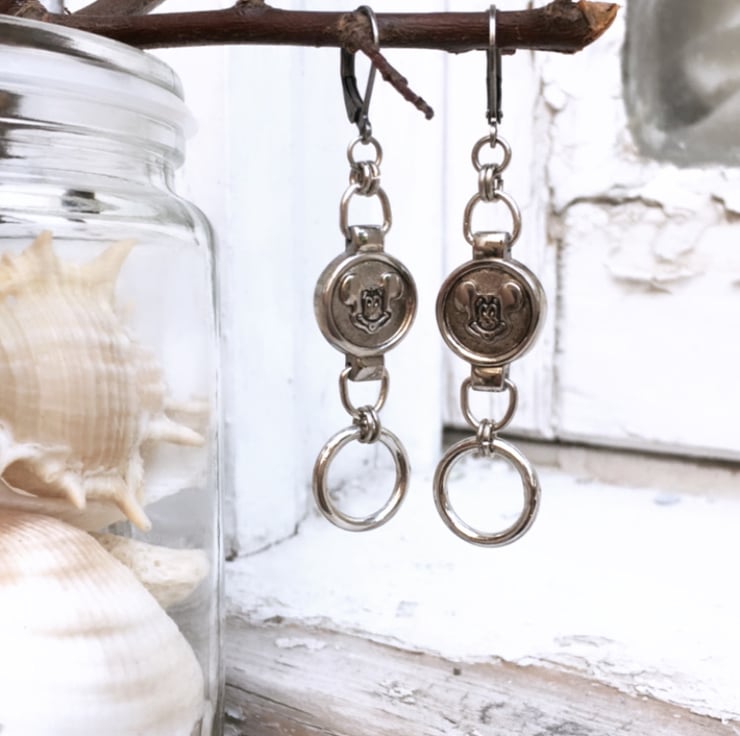 Upcycled Vintage Mickey Mouse watch parts stainless steel earrings
