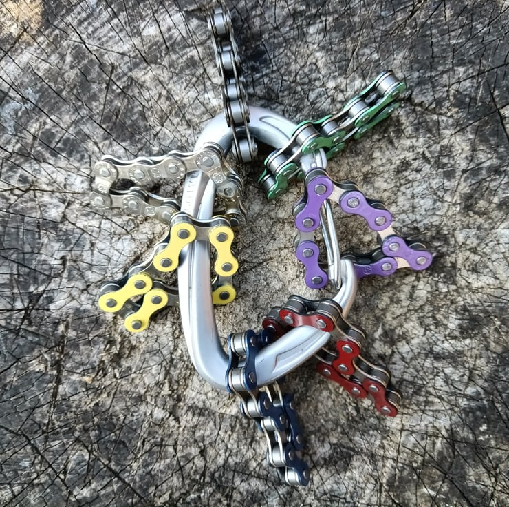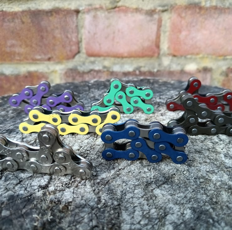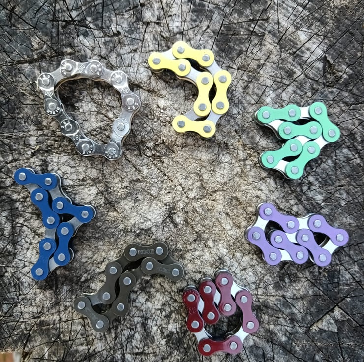 Unique sensory fidgets handmade out of colourful bike chains, with no plastics, no import from China! They can be attached to a keyring or a carabiner or simply carried in your pocket! Made out of steel, they have a very nice weight to them and move very smoothly. I put a lot of effort into finding specific types of chains for the best feel (and colours!).