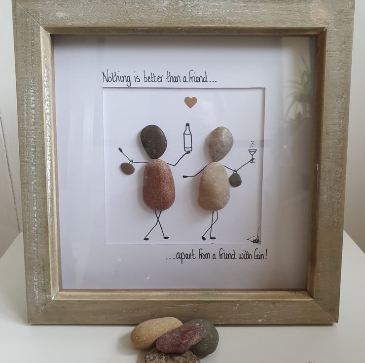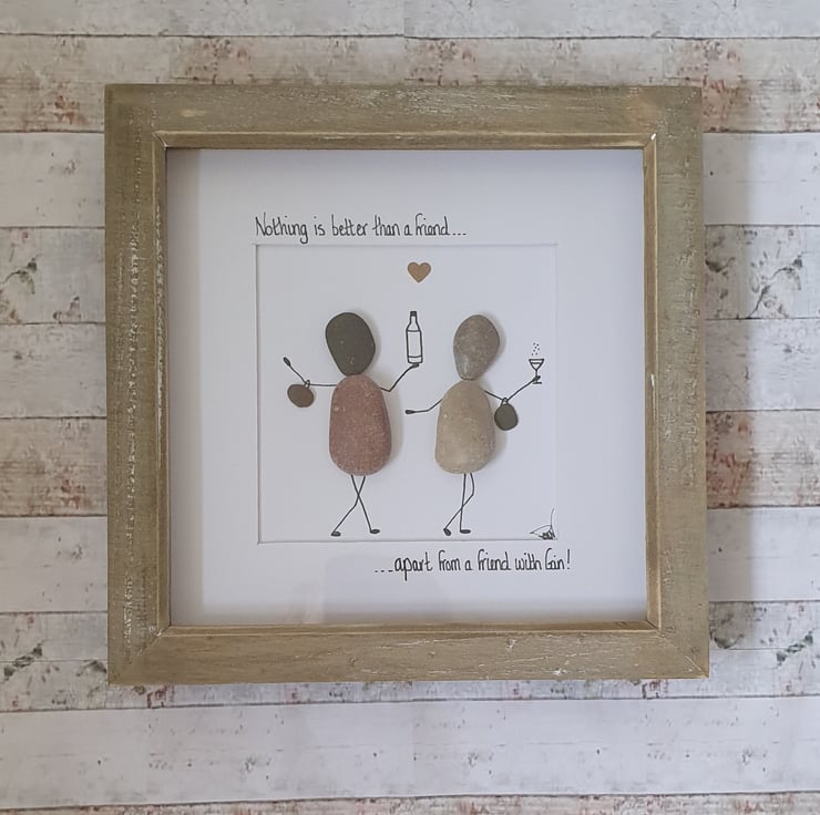 A truly unique, one of a kind, beautiful handmade pebble art “Nothing is better than a friend” picture that can be personalised to create a picture that is unique to every friendship group.