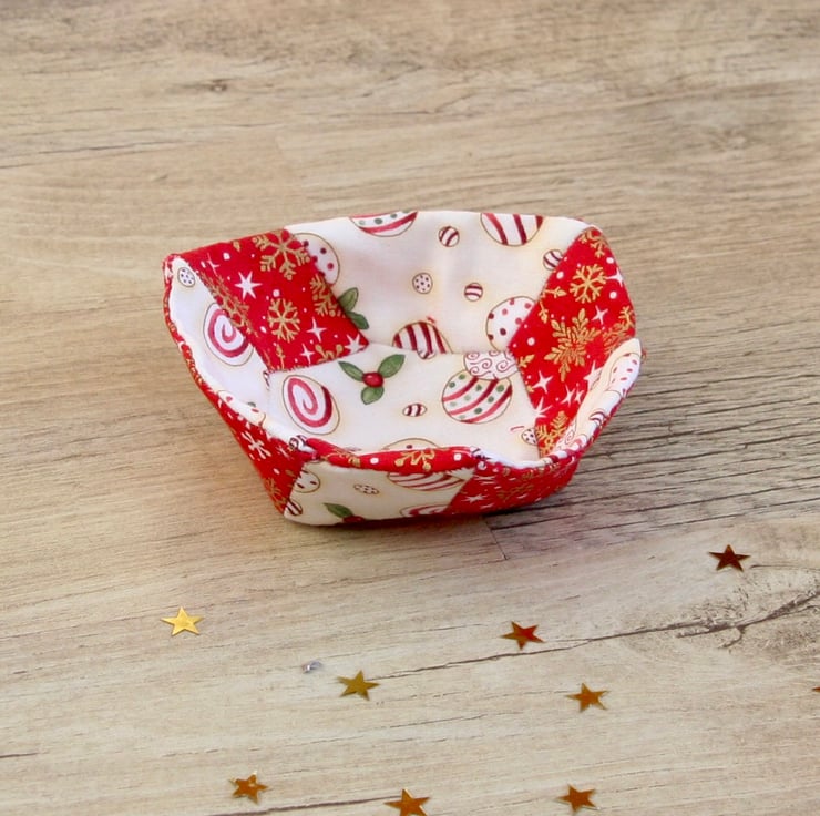 This little patchwork fabric basket is perfect for putting out some little treats or to hold some festive scented pot pourri.