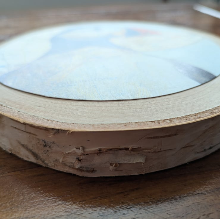 The natural edge of the birch complements the wildlife image and creates an unusual and original way to display artwork!