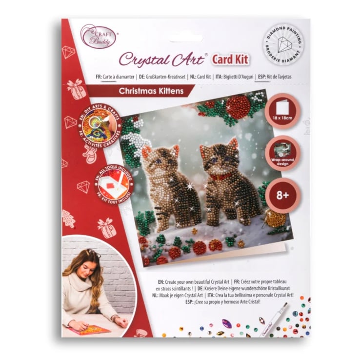 Crystal card kits are craft kits, ideal for children and adults, they enable you to make your own sparkly crystal card. This technique is similar to painting by numbers. Each crystal card design has a numbered, adhesive template. Using a tool (included), simply lift up the coloured crystals and place them on the corresponding numbered dots. They stick instantly! The result is a beautiful piece of sparkly art which you can gift to loved ones or use yourself. Making a crystal card takes 30-45 minutes. They are suitable for ages 6 and up.