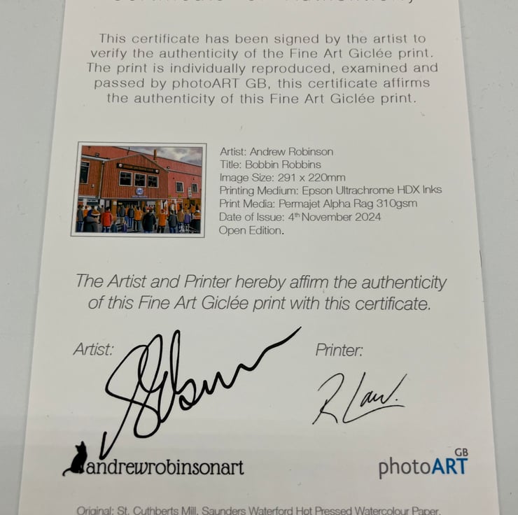 Titled ‘Bobbin' Robin's’ this is a unique Bristol print direct from myself the artist. My artworks are a celebration of the match day experience and of stadium architecture.
