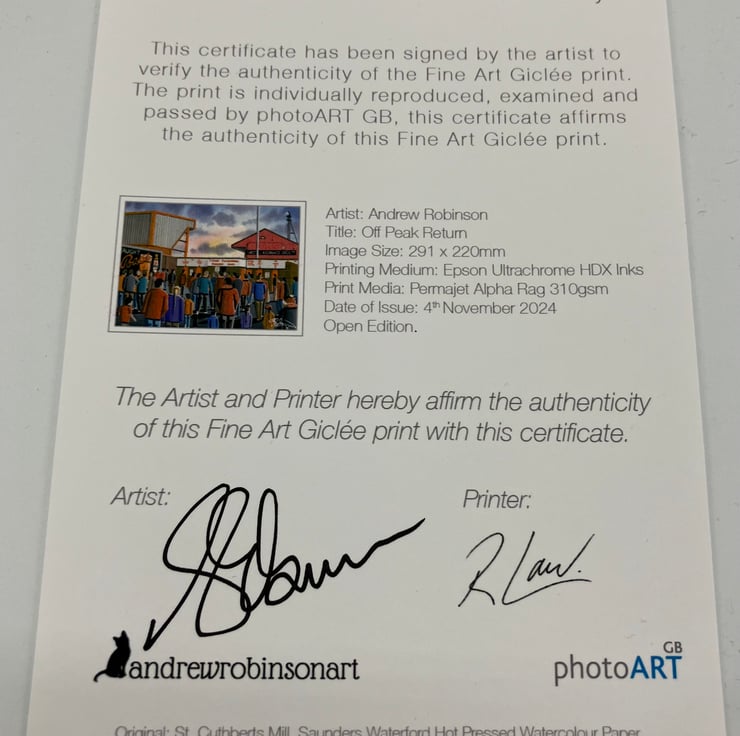 All andrewrobinsonart giclee prints are professionally printed, made using state of the art printing equipment with only the highest quality inks and print media. This ensures an honest reproduction that can last a lifetime.