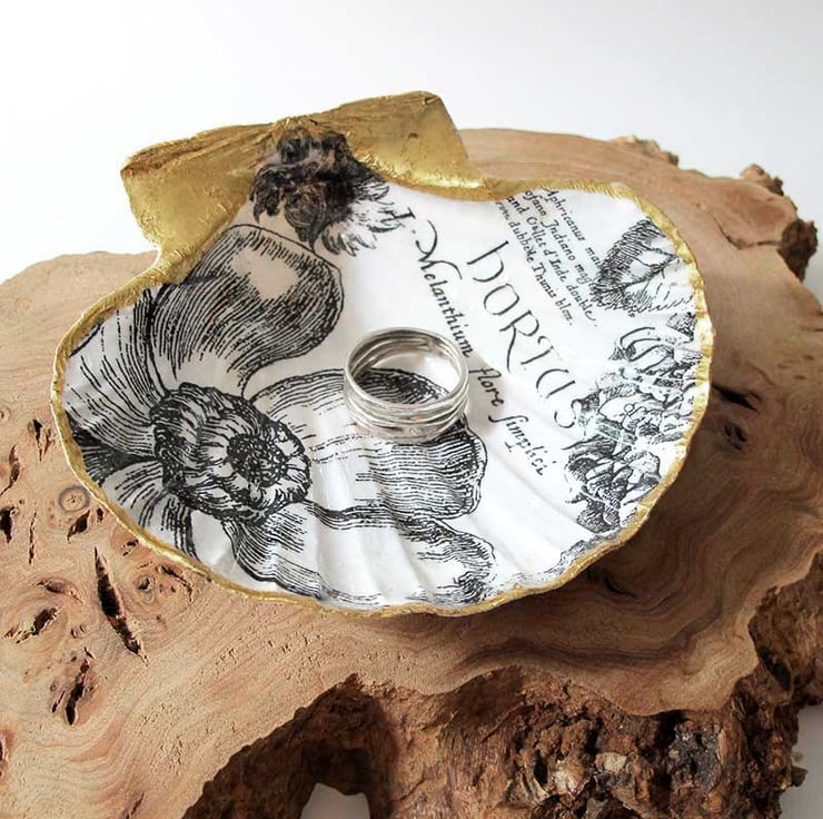 SCALLOP SHELL TRINKET DISH DECOUPAGE