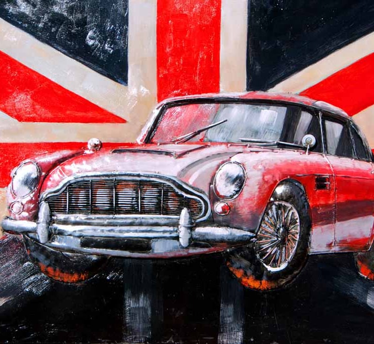 Aston Martin DB5 sports car and a Union Jack British Flag a photographic print photography by Andy Evans Photos