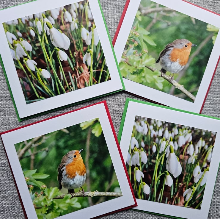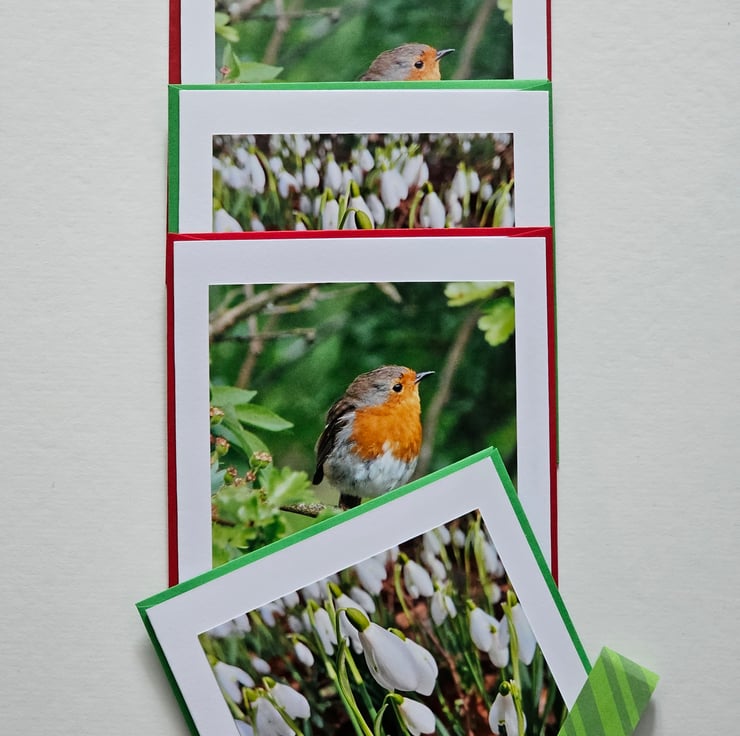 The cards are made from quality matt photo prints (approx 4 x 4) mounted onto white cards (5x5, 12.5cm x 12.5cm). They can be kept and framed if desired. They come with red and green square envelopes to make them more Christmassy/ festive.