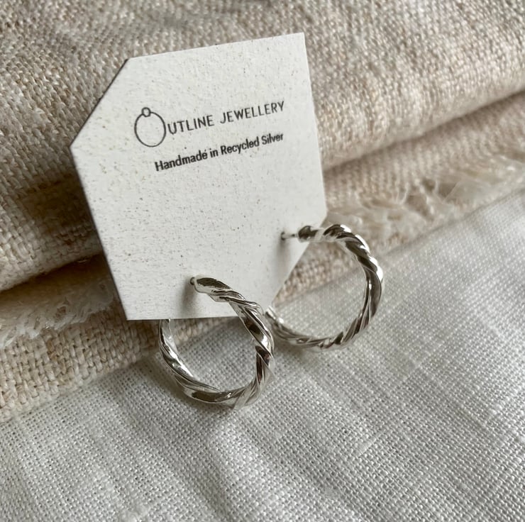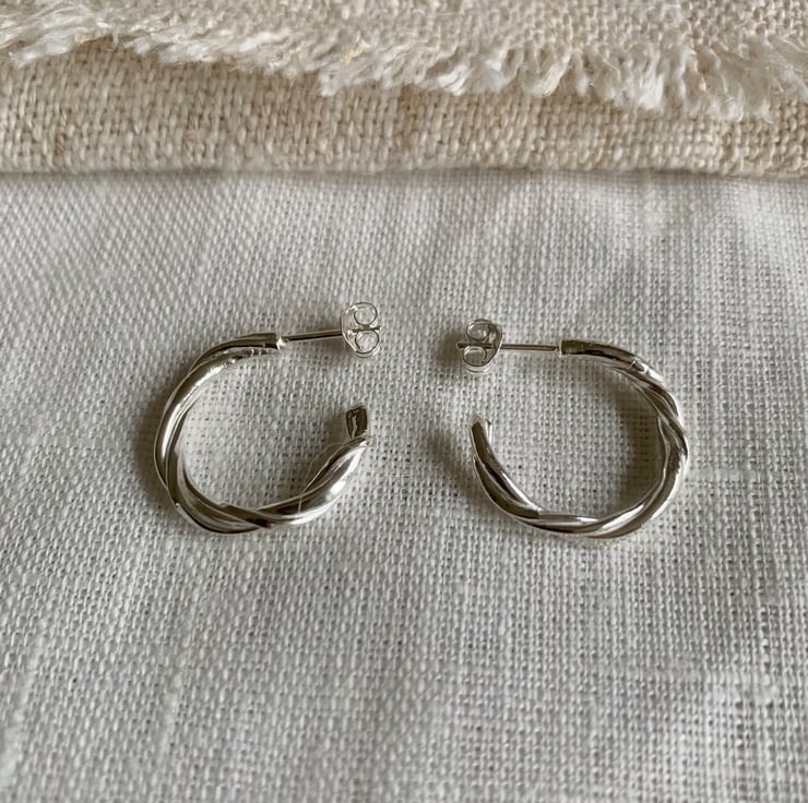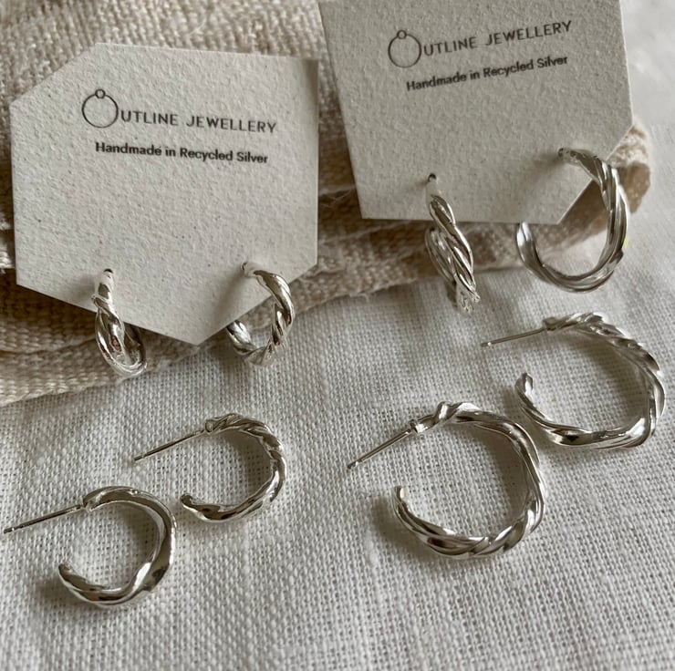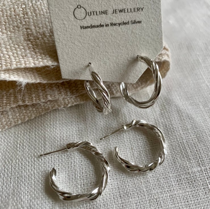 These are individually made by hand in recycled sterling silver. Therefore there may be very small variations in size and twist pattern from the photo.