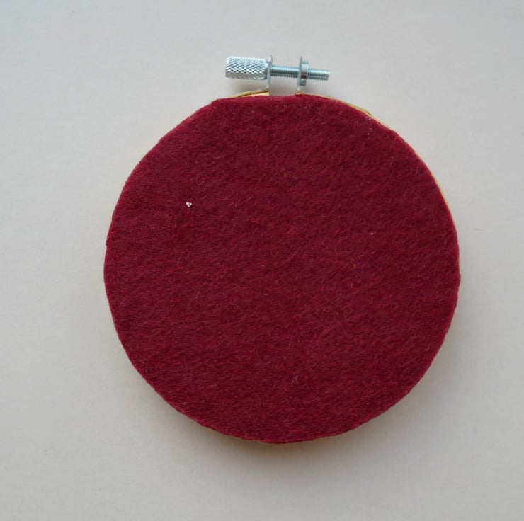 Materials: Wooden hoop, fabric, felt, glue, cord, cotton thread, and acrylic paints.