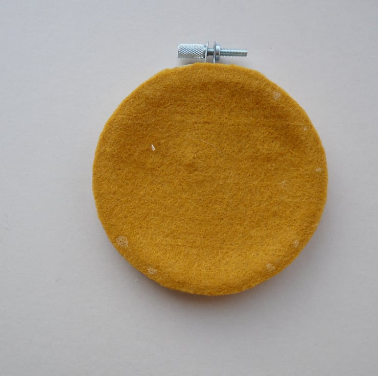 Materials: Wooden hoop, fabric, felt, glue, cord, cotton thread, and acrylic paints.